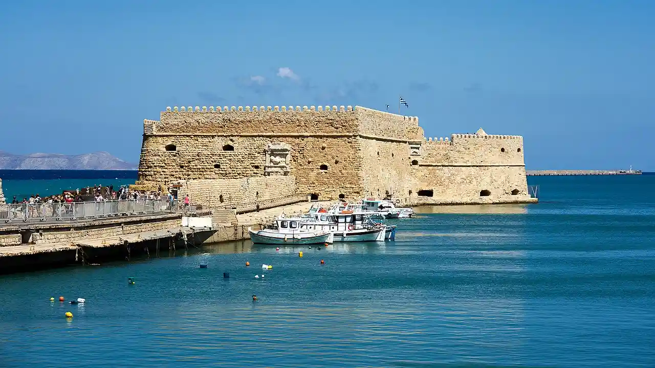 The Koules () or Castello a Mare ("Fort on the Sea" in Italian) is a fortress located at the entrance of the old port of Heraklion, Crete, Greece. It was built by the Republic of Venice in the early 16th century, and is still in good condition today. Read more on Wikipedia