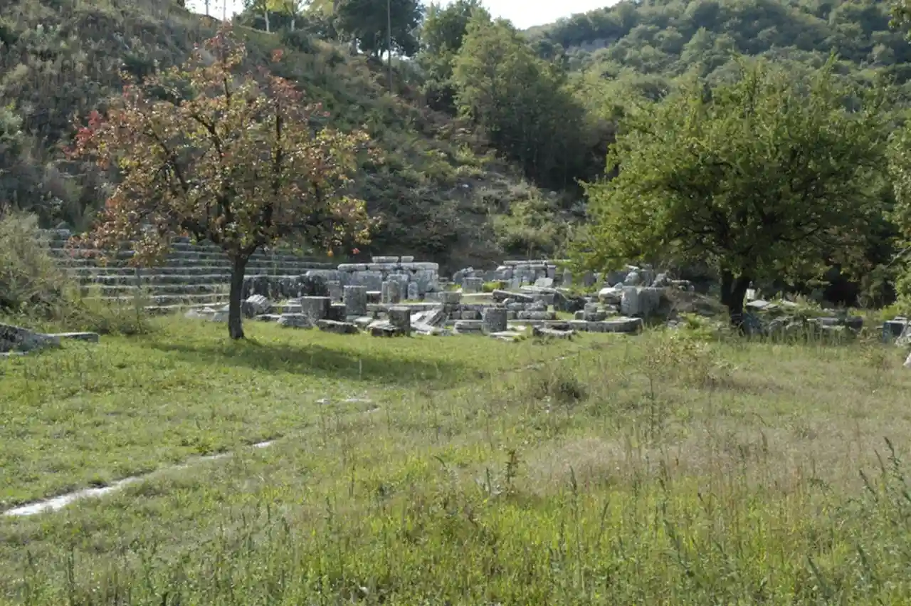 Lycosura () was a city in the ancient Parrhasia region of south Arcadia said by Pausanias to be the oldest city in the world, although there is no evidence for its existence before the fourth century BCE. Its current significance is chiefly associated with the sanctuary of the goddess Despoina, which contained a colossal sculptural group that Pausanias (perhaps inaccurately) wrote was made by Damophon of Messene. This group comprises acrolithic-technique statues of Despoina and Demeter seated on a throne, with statues of Artemis and the Titan Anytos standing on either side of them – all in Pentelic marble. The dates of both the temple and the sculptural group have occasioned some dispute. Remains of a stoa, altars, and other structures have been found at the site as well. The Sanctuary of Despoina at Lycosoura is located 9 km WSW of Megalopolis, 6.9 km SSE of Mount Lykaion, and 160 km SW of Athens. There is a small museum at the archaeological site housing small finds as well as part of the cult group, while the remains of the cult statues of Despoina and Demeter are displayed at the National Archaeological Museum of Athens. Read more on Wikipedia