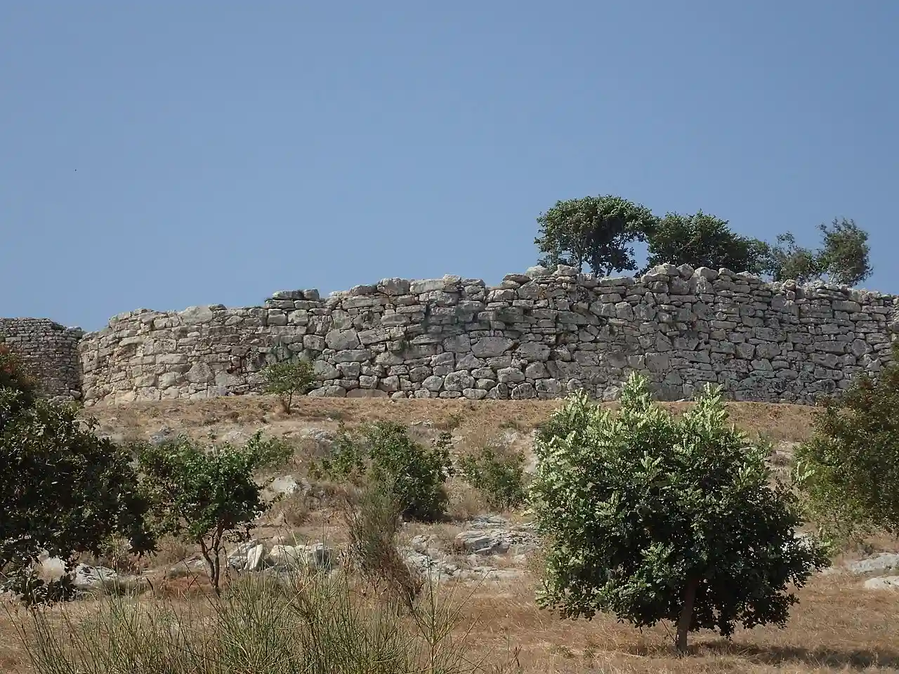 The Dymaean Wall (, Teichos Dymaiōn) or Kalogria Castle is a prehistoric acropolis in western Achaea, Greece. The fortress stands in a strategic position on a rocky hilltop, north of the Prokopos lagoon, near the village of Araxos. It was built in the Mycenaean period, probably around 1300 BC, but human occupation of the site started already around 3500 BC. It was deserted in the 18th century AD. During World War II it was used by occupying Italian forces, who built a number of military installations on the site and damaged the prehistoric fortifications.Greek Ministry of Culture Read more on Wikipedia