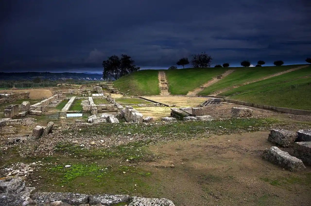 Elis (, , in the local dialect: Ϝᾶλις,Supplementum Epigraphicum Graecum 12.371.38 Modern ) was the capital city of the ancient polis (city-state) of Elis, in ancient Greece. It was situated in the northwest of the Peloponnese, to the west of Arcadia. Just before the Peneius emerges from the hills into the plain, the valley of the river is contracted on the south by a projecting hill of a peaked form, and nearly in height. This hill was the acropolis of Elis, and commanded as well the narrow valley of the Peneius as the open plain beyond. The ancient city lay at the foot of the hill, and extended across the river, as Strabo says that the Peneius flowed through the city; but since no remains are now found on the right or northern bank, it is probable that all the public buildings were on the left bank of the river, more especially as Pausanias does not make any allusion to the river in his description of the city. Read more on Wikipedia