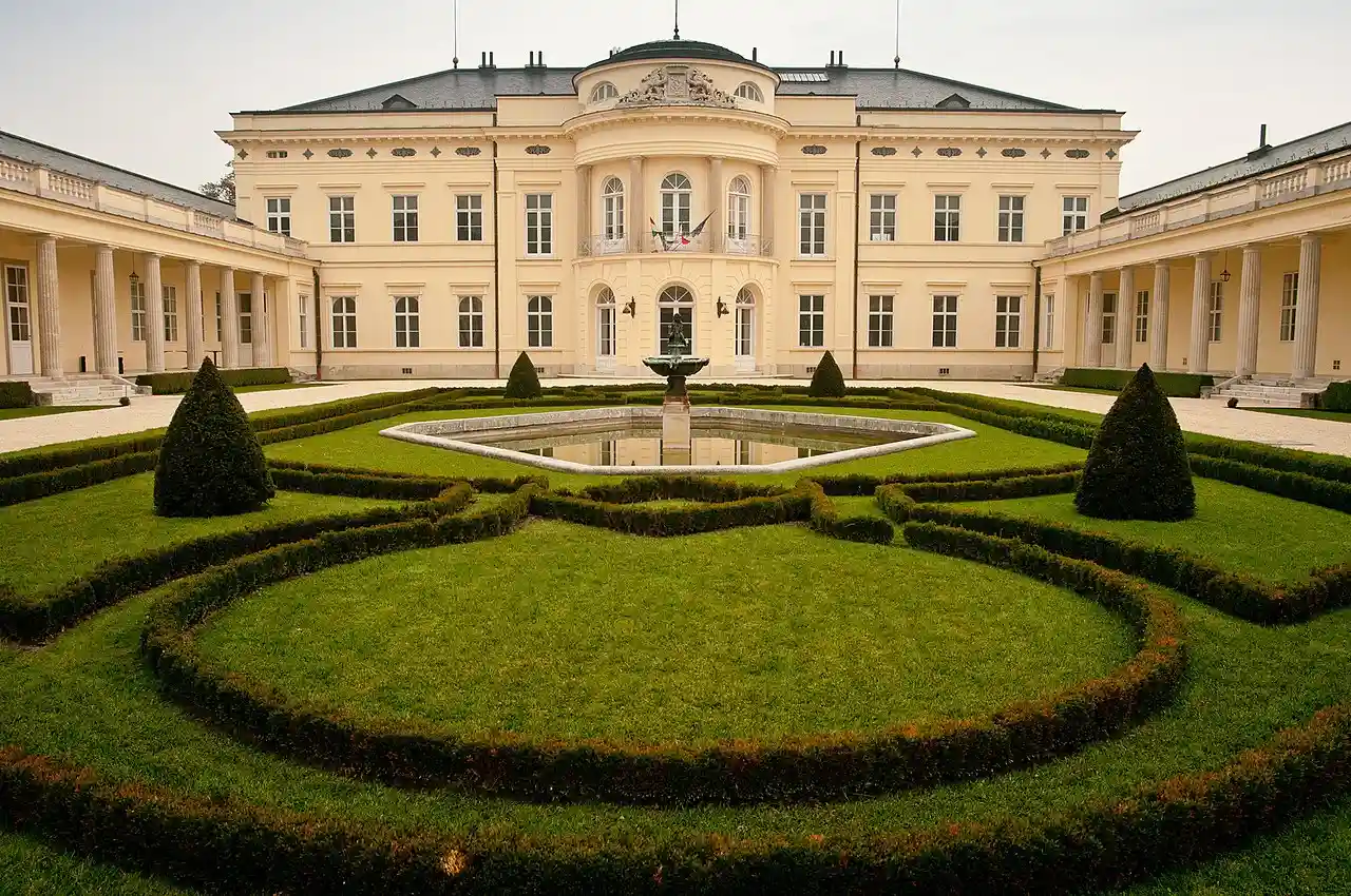 The Károlyi Castle () is a 19th-century castle, of Classicist and Eclectic styles, it is located in the village of Fehérvárcsurgó in the Fejér County, Hungary. The complex was built by György Károlyi from the Károlyi noble family, designed by architects Henrich Koch and Miklós Ybl. There are 20 rooms in the building, and there is a guided tour. Read more on Wikipedia