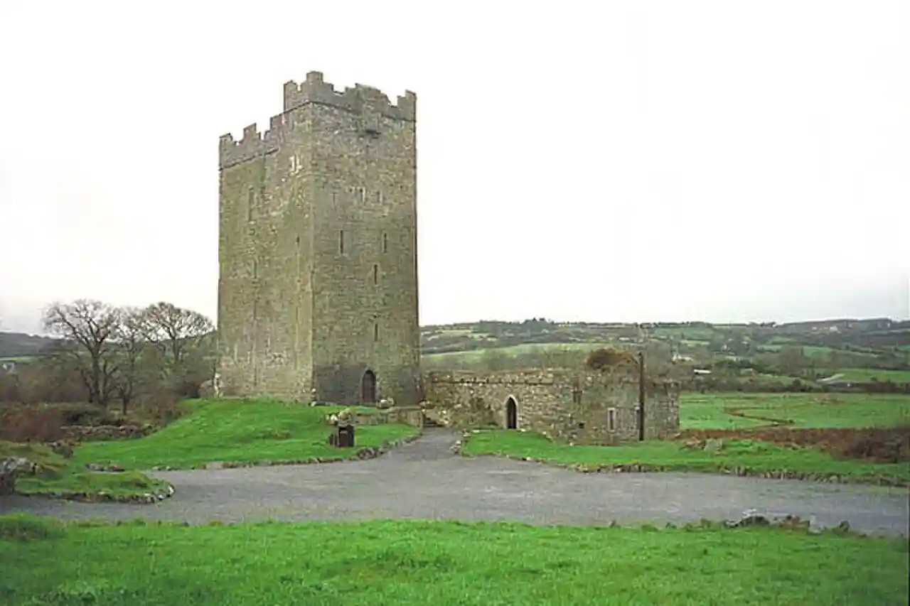 O'Dea Castle, also known as Dysert O'Dea Castle, is an Irish fortified tower house, loosely described as a castleUa Croinin and Breen comment in The Other Clare, 1985: "The castle itself is more correctly designated a tower-house as it falls easily in the category of such fortified houses built in great numbers throughout the southern part of Ireland between 1400 and 1600." (Detailed reference below.) at Dysert O'Dea (), the former O'Dea clan stronghold, from Corofin, County Clare.Caisleán Uí Dheá Placenames Database of Ireland. Retrieved 22 November 2011. It was built between 1470 and 1490 by Diarmaid O'Dea, Lord of Cineal Fearmaic, and stands some high on a limestone outcrop base measuring .Dysart O'Dea Castle, Co. Clare by Risteard Ua Croinin and Martin Breen, The Other Clare, Volume 9, page 17. Shannon Archaeological and Historical Society, April 1985. The tower is adjacent to Dysert O'Dea Monastery, close to the R476 road. Read more on Wikipedia