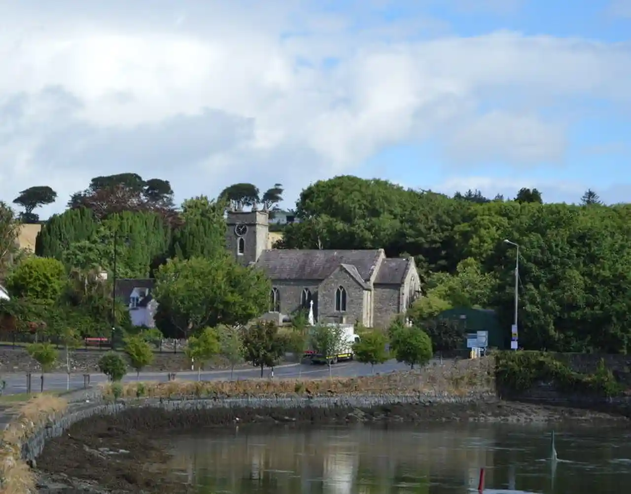 The Church of the Ascension is a small Gothic Revival church belonging to the Church of Ireland and located in Timoleague, a town in West Cork, Ireland. It is dedicated to the Ascension of Jesus. Part of the Kilgarrife Union of Parishes in the Diocese of Cork, Cloyne and Ross, the church is known for its intricate mosaics. Read more on Wikipedia