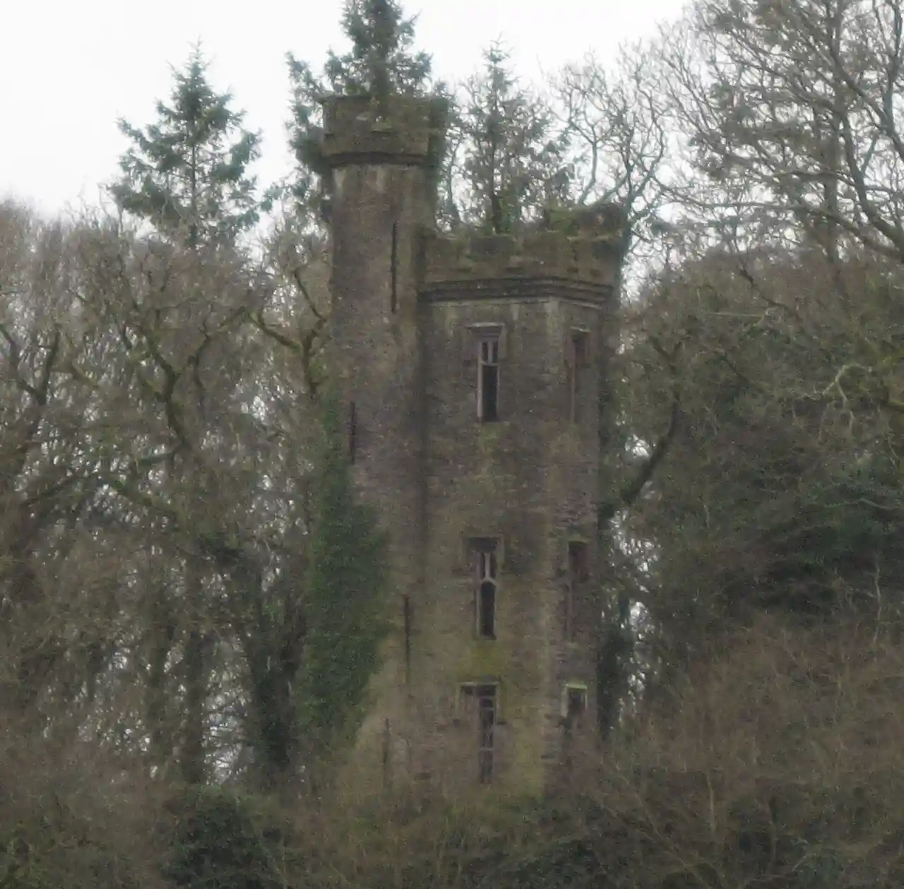 Crooke's Castle is an ornamental tower or folly in Aghavrin townland, north-west of Coachford village, County Cork, Republic of Ireland. It was built in the early 19th century by Thomas Epinetus Crooke of nearby Aghavrin House, who served during the Napoleonic Wars, mainly on board HMS Shamrock, a Royal Navy blockade ship. It is included on the Record of Protected Structures maintained by Cork County Council. Read more on Wikipedia