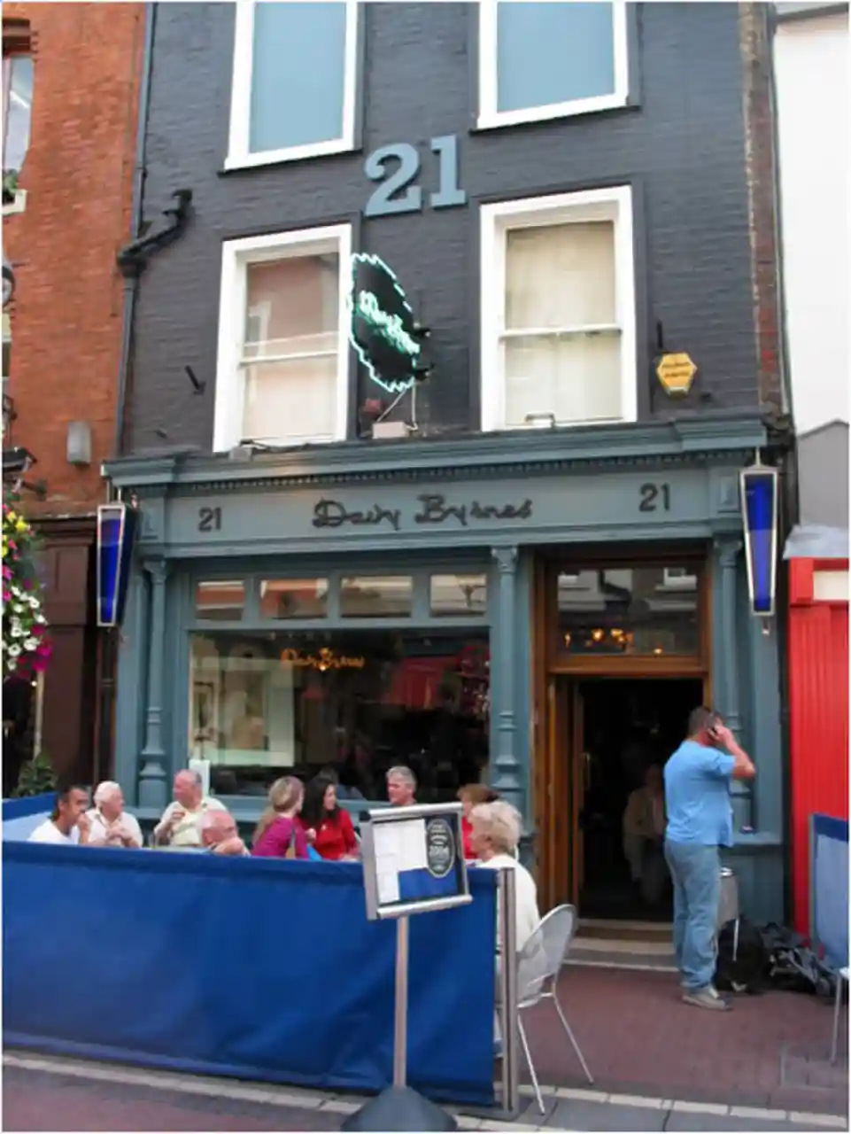 Davy Byrne's pub is a public house located at 21 Duke Street, Dublin. It was made famous by its appearance in Chapter 8 ('Lestrygonians') of James Joyce's 1922 modernist novel Ulysses, set on Thursday 16 June 1904. The main character, advertising canvasser Leopold Bloom, stops at around 1 p.m. for a gorgonzola cheese sandwich and a glass of burgundy while wandering through Dublin. Read more on Wikipedia