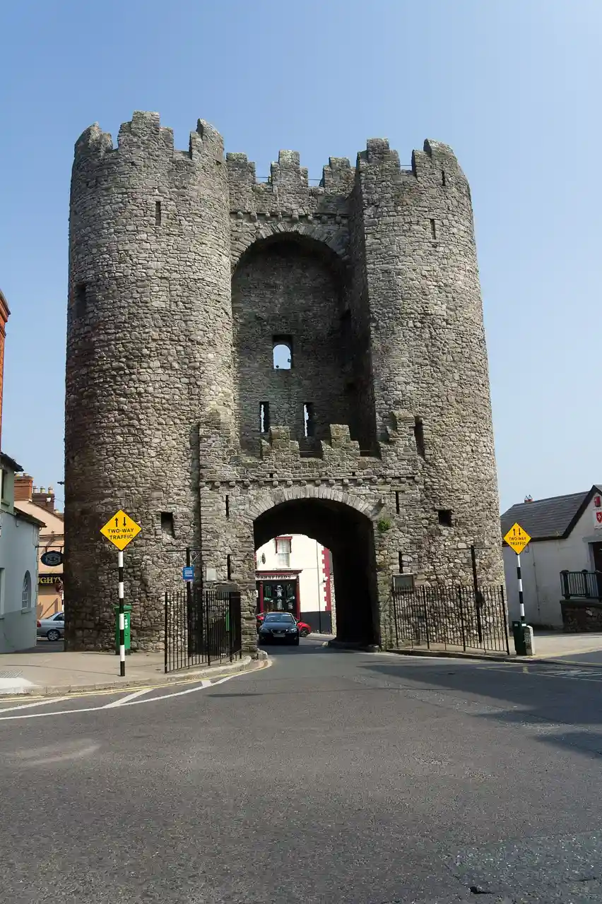 The Saint Laurence Gate is a barbican which was built in the 13th century as part of the walled fortifications of the medieval town of Drogheda in Ireland. It is a barbican or defended fore-work which stood directly outside the original gate of which no surface trace survives.St. Laurence Gate on askaboutireland.ie It has been described as one of the finest of its kind, and is designated as a national monument.St. Laurence Gate on www.discoverireland.ie The original names for Laurence Street and Saint Laurence Gate were Great East Street and Great East Gate, respectively. In the 14th century, the street and gate were renamed because they led to the hospital of Saint Laurence, which stood close to the Cord church.Archiseek (Irish-architecture.com) Laurence Gate entry (with pictures and notes). Retrieved at 27 March 2008 Read more on Wikipedia