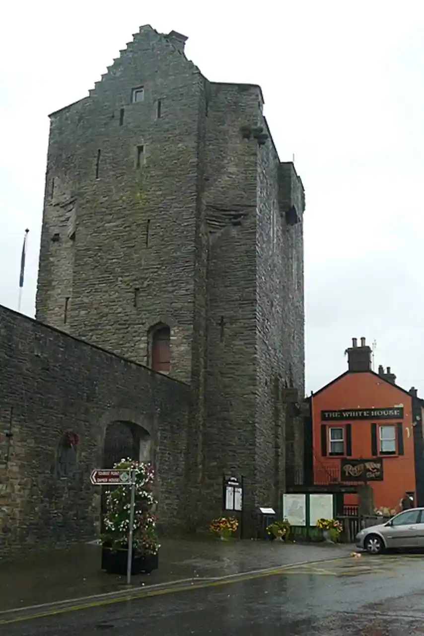 Roscrea Castle is a 13th-century motte-and-bailey castle in the town of Roscrea, Ireland. The Castle consists of a walled courtyard, gate block, and angled towers. Along with 18th century Damer House and gardens, the Castle forms part of Roscrea Heritage Centre. Read more on Wikipedia