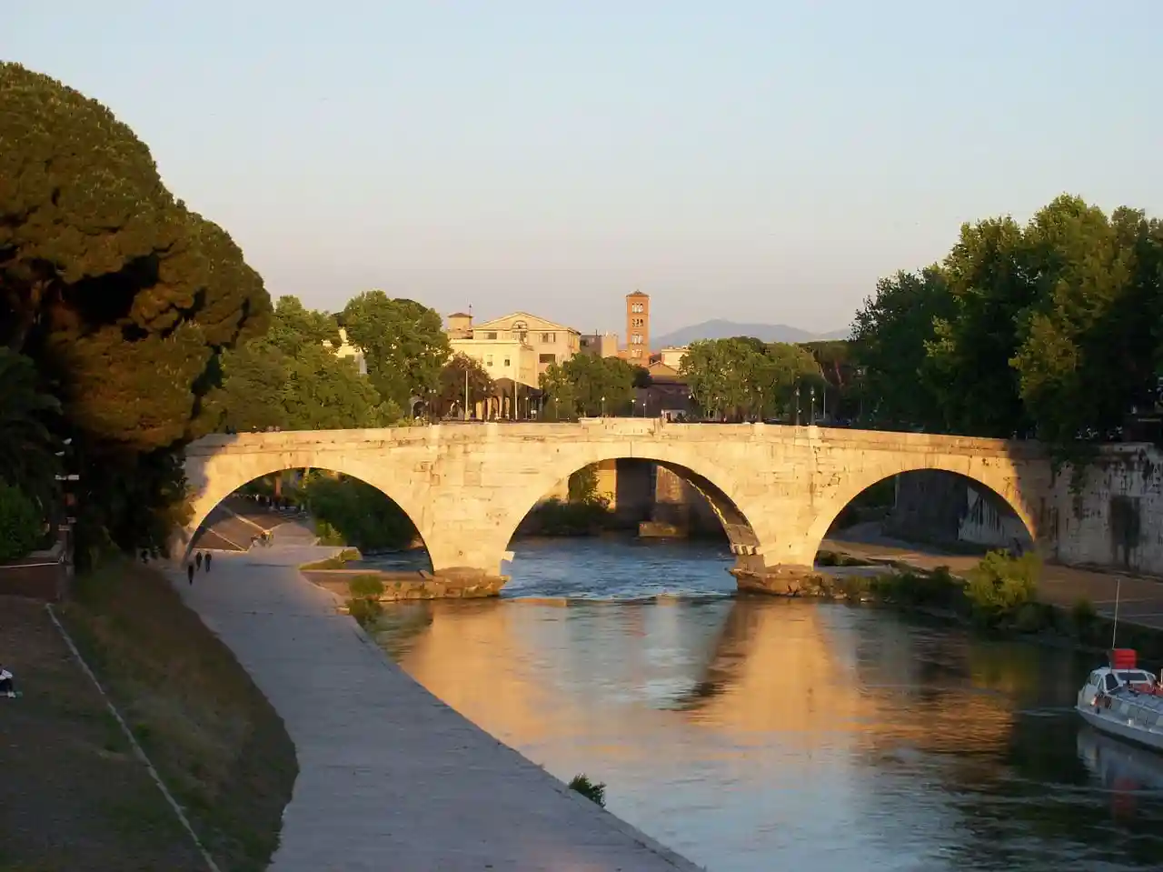 The Pons Cestius (Latin for the "Cestian Bridge"; ) is an ancient Roman bridge connecting the right bank of the Tiber with the west bank of Tiber Island in Rome, Italy. In Late Antiquity, the bridge was replaced and renamed the Pons Gratiani ("Bridge of Gratian"). It is also known as Ponte San Bartolomeo (Italian for "Bridge of St Bartholomew"). No more than one third of the present stone bridge is of ancient material, as it was entirely rebuilt and extended in the 19th century after numerous earlier restorations. Read more on Wikipedia