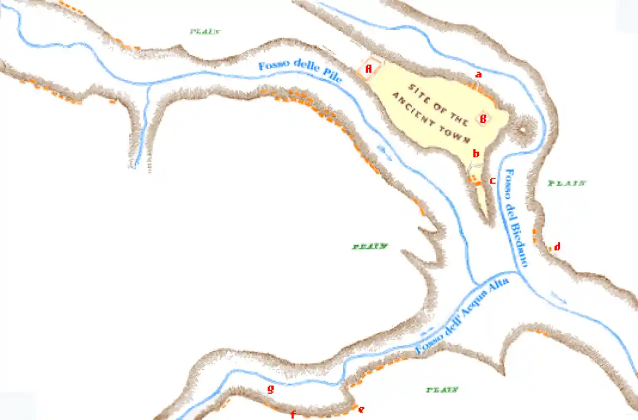 Norchia is an ancient Etruscan city with an adjacent necropolis, near Vetralla in Italy. The site is along the Via Clodia, and is not far from the more well known Etruscan town of Tarquinia. Read more on Wikipedia