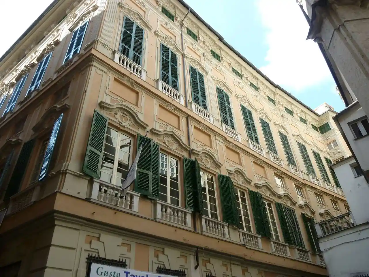 The Palazzo Cosma Centurione is a building located in the historical centre of Genoa, in Via Lomellini at no. 8, included on 13 July 2006 in the list of the 42 palaces inscribed in the Rolli di Genova that became World Heritage by UNESCO on that date. Also known as the Palazzo Durazzo Pallavicini or Palazzo di Gerolamo III Pallavicino, from the name of its successive owners, due to its architecture and the frescoes preserved inside, it is an outstanding example of Genoese Baroque. Read more on Wikipedia