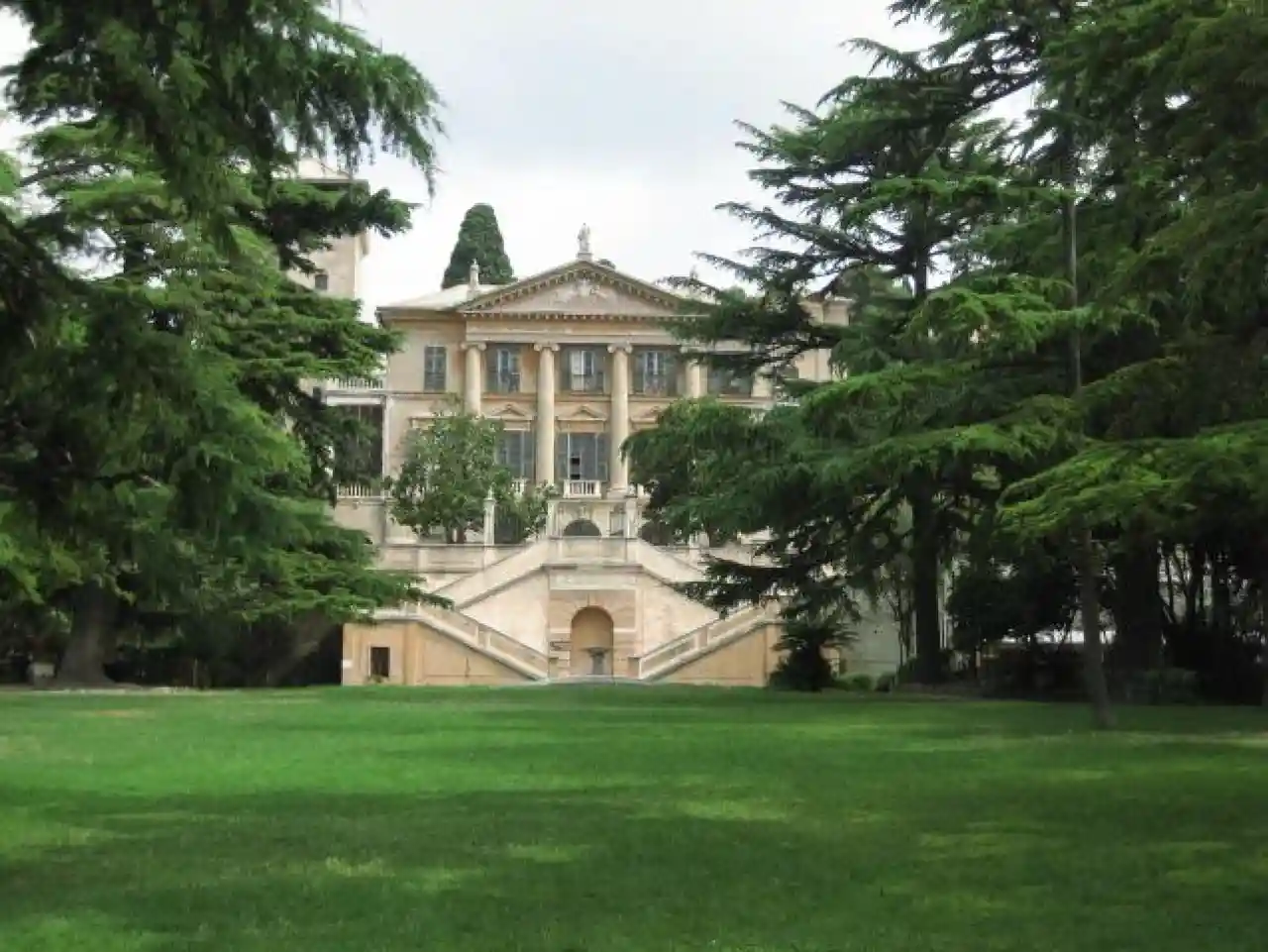 Villa Gruber De Mari was built by the noble Genoese family De Mari in the second half of the 16th century in the suburban area between the Sant'Anna and San Rocchino walkways linking the center of the city to the New Walls, in the Castelletto neighborhood of Genoa, Italy. The villa includes a 16th-century guard tower and the 17th-century former private chapel, now the Abbatial Church of Santa Maria della Sanità . The villa is located in a panoramic position within a large park, which has been opened to the public after the villa was acquired by the Municipality of Genoa in the 20th century. Read more on Wikipedia