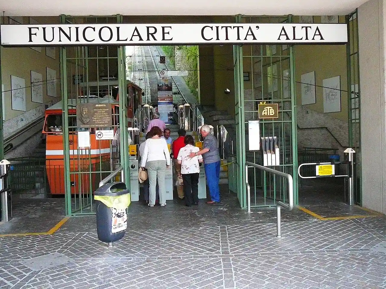 The Funicular Railway Upper City - Lower City (Italian: Funicolare Città Alta), is a funicular railway line in the city of Bergamo, Italy. It connects the historic core of Città Alta (the suspended fortified city of Bergamo built up on a hill) with the Città Bassa, the financial lower city. Built in 1887, it is one of the two funicular lines serving the city of Bergamo; the other being the Bergamo - San Vigilio funicular. Read more on Wikipedia