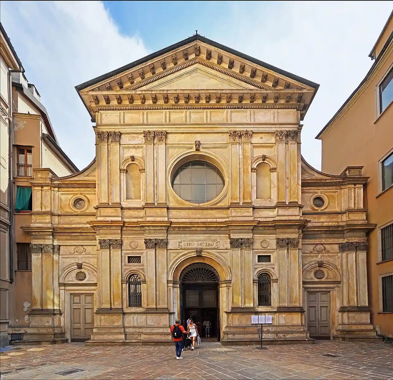 Santa Maria presso San Satiro (Saint Mary near Saint Satyrus) is a church in Milan. The Italian Renaissance structure (1476–1482) houses the early medieval shrine to Satyrus, brother of Saint Ambrose. The church is known for its false apse, an early example of trompe-l'œil, attributed to Donato Bramante. Read more on Wikipedia