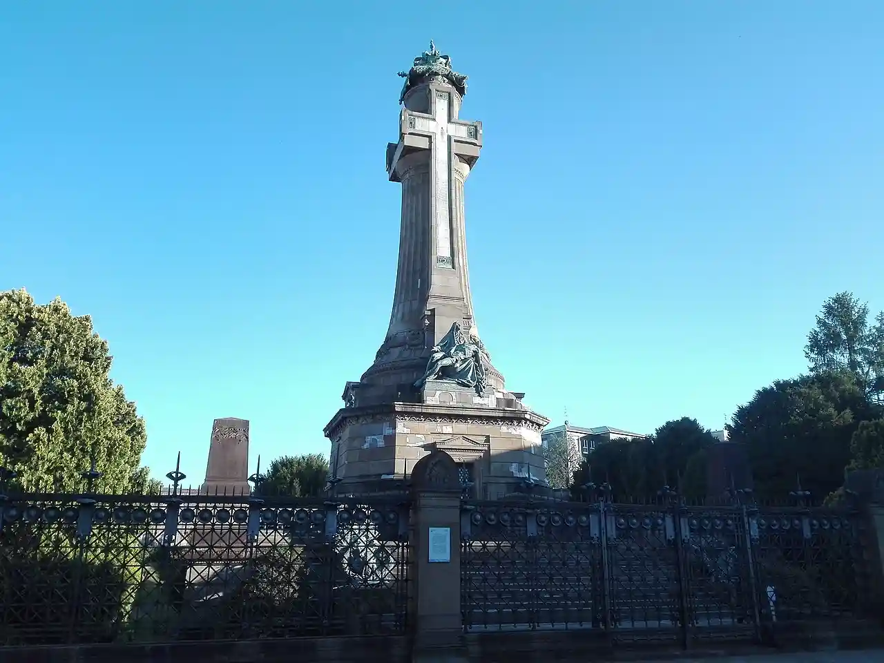 The Expiatory Chapel in Monza is a monument-chapel built to atone and commemorate the site at which the king Umberto I of Italy was murdered on July 29, 1900, by the anarchist Gaetano Bresci. It stands near the entrance to the Royal Villa of Monza on Viale Regina Margherita and Via Matteo da Campione. Umberto's son Vittorio Emanuele III commissioned the aged architect Giuseppe Sacconi, and the work was completed by his pupil Guido Cirilli in 1910. Obelisk-like crosses emerge from a stone chapel, and are surmounted by bronze crown and royal symbols of the House of Savoy. The entrance is surmounted by a Pietà by the sculptor Lodovico Pogliaghi. Read more on Wikipedia
