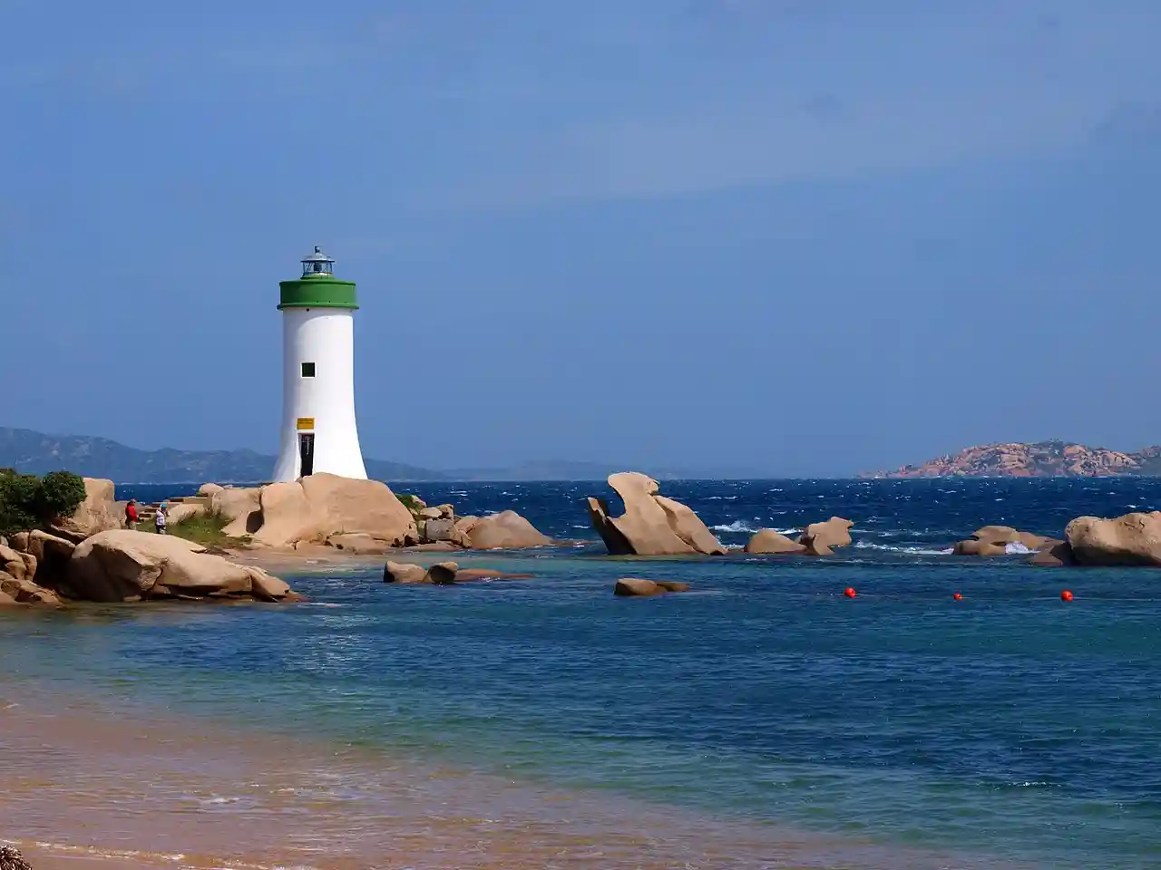 Punta Palau Lighthouse () is an active lighthouse located on the northern extremity of a granite promontory where, shaped by time, appears a natural sculpture that looks like a bear, symbol of Palau in front of the Maddalena archipelago on the Tyrrhenian Sea. Read more on Wikipedia