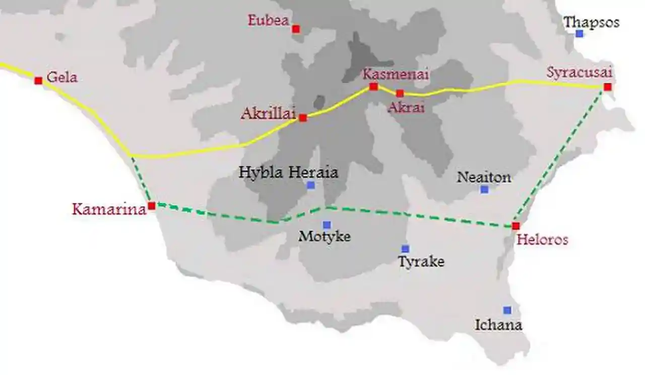 Casmenae or Kasmenai (,Stephanus of Byzantium, Ethnica, §K364.1 Casmene in Italian) was an ancient Greek colony of Magna Graecia located on the Hyblaean Mountains, founded in 644 BC by the Syracusans at a strategic position for the control of central Sicily. It was also intended as a military forward-position on the Via Selinuntina road that connected Syracuse to Akragas (modern-day Agrigento) - also on that road were Gela and Akrillai to Casmenae's west and Akrai to its east. Destroyed by the Romans in 212 BC, Casmenae was abandoned during the 3rd century BC and never inhabited again. Read more on Wikipedia