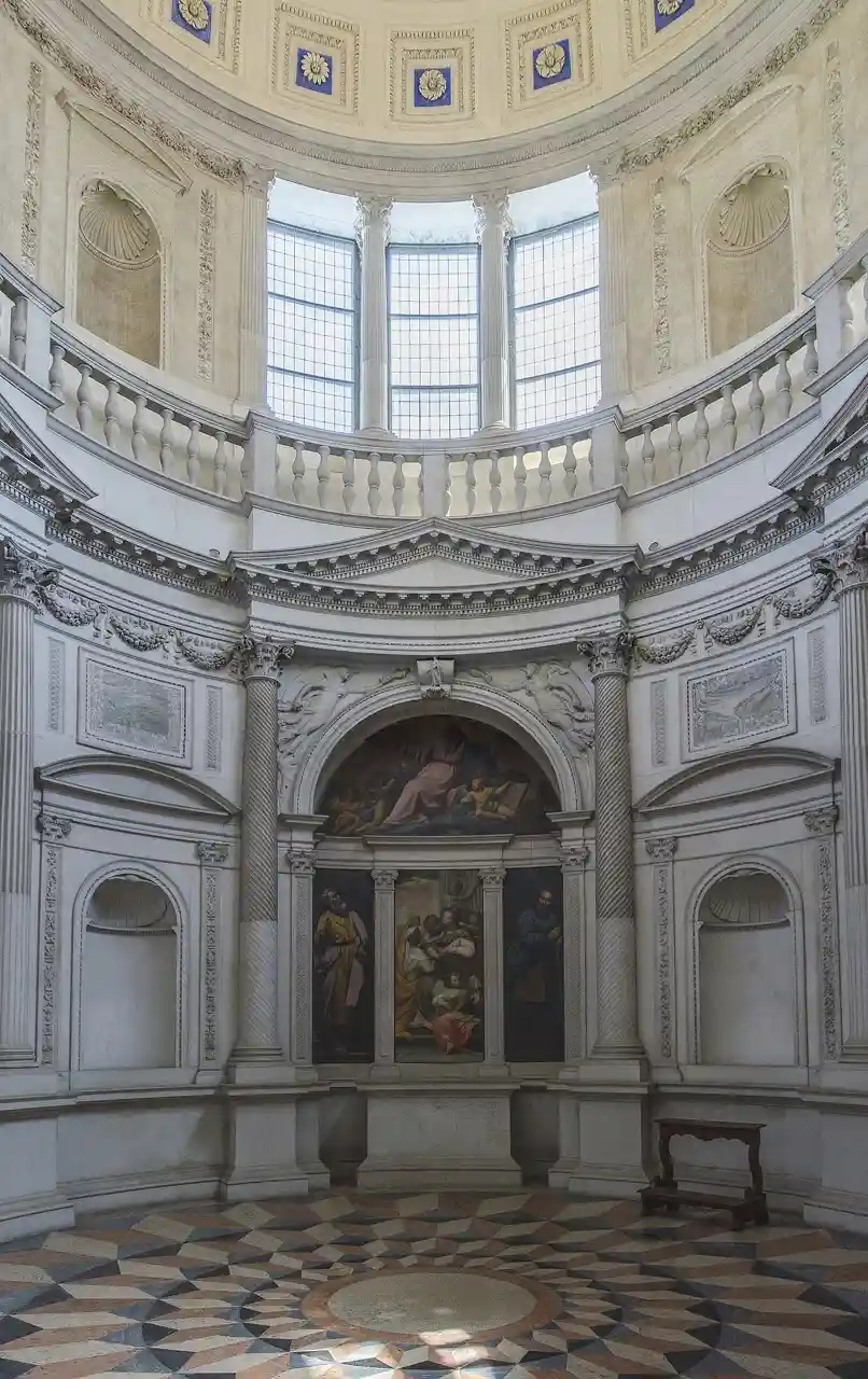 The Pellegrini Chapel (Italian: Cappella Pellegrini), initially named "Guaresco,""This chapel was for a long time called Guaresco from the noble name of the Raimondi family, and it was kept until the College of Notaries in Verona (so willed by the testatrix) sustained its patronage." In Ronzani, p. 13. is a religious building commissioned by Countess Margherita Pellegrini to the famous architect Michele Sanmicheli and built between 1528 and 1559. It occupies a prominent place in Renaissance architecture.On this subject Giorgio Vasari, in the 1568 edition of his The Lives of the Most Excellent Painters, Sculptors and Architects, writes: "Michele was excellent not only in fortifications, but also in private buildings, in temples, churches and monasteries, as can be seen in Verona and elsewhere in many buildings, particularly in the very beautiful and ornate Guareschi chapel in San Bernardino, made round for the use of a temple and of Corinthian order, with all those ornaments of which that style is capable. [... ] For being therefore from within the said chapel of this beautiful stone and worked by excellent masters of carving and very well commissioned, it is held that for a similar work there is no other more beautiful in Italy today, Michele having made the whole work round in such a manner, that the three altars that are in it with their frontispieces and cornices, and similarly the doorway, all turn in a perfect round, almost in the likeness of the exits that Filippo Brunelleschi made in the chapels of the temple of the Angels in Florence, which is a very difficult thing to do." Read more on Wikipedia
