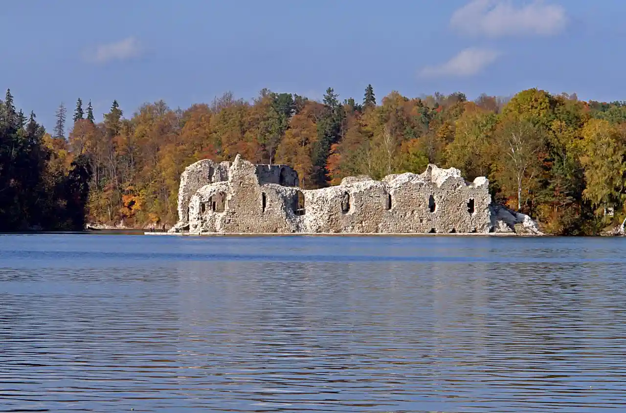 Koknese Castle (, ) is a complex in Koknese, Latvia, dating from the 13th century. The castle was situated on a high bluff overlooking the Daugava river valley. In 1965 a hydroelectric dam was built downriver, creating a reservoir that partially submerged the castle and flooded the surrounding valley. Read more on Wikipedia