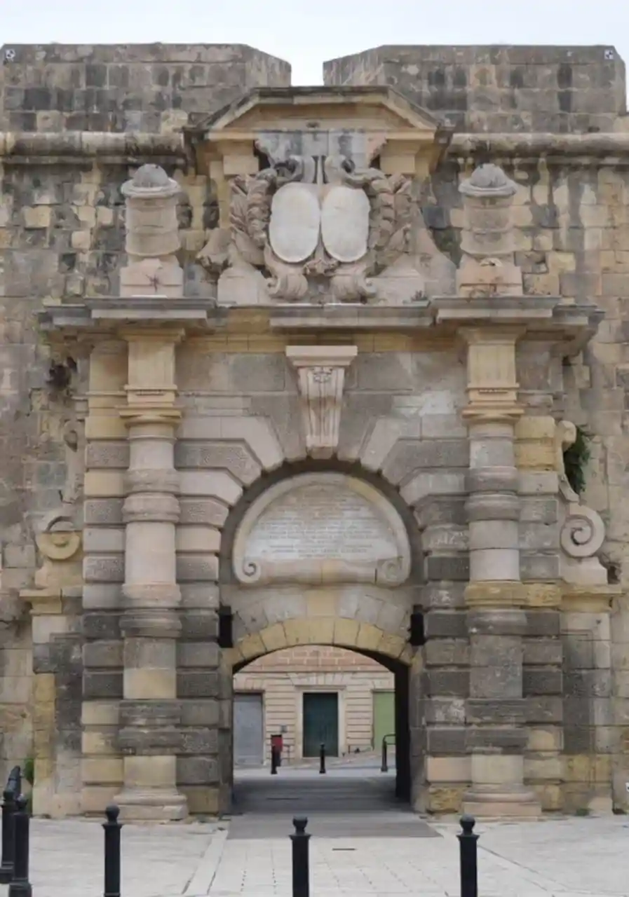 St. Helen's Gate (), also known as Porta dei Mortari, is the main gate of the Santa Margherita Lines, located in Cospicua, Malta. It was built in the Baroque style in 1736 to designs of Charles François de Mondion, during the magistracy of Grand Master António Manoel de Vilhena. Read more on Wikipedia