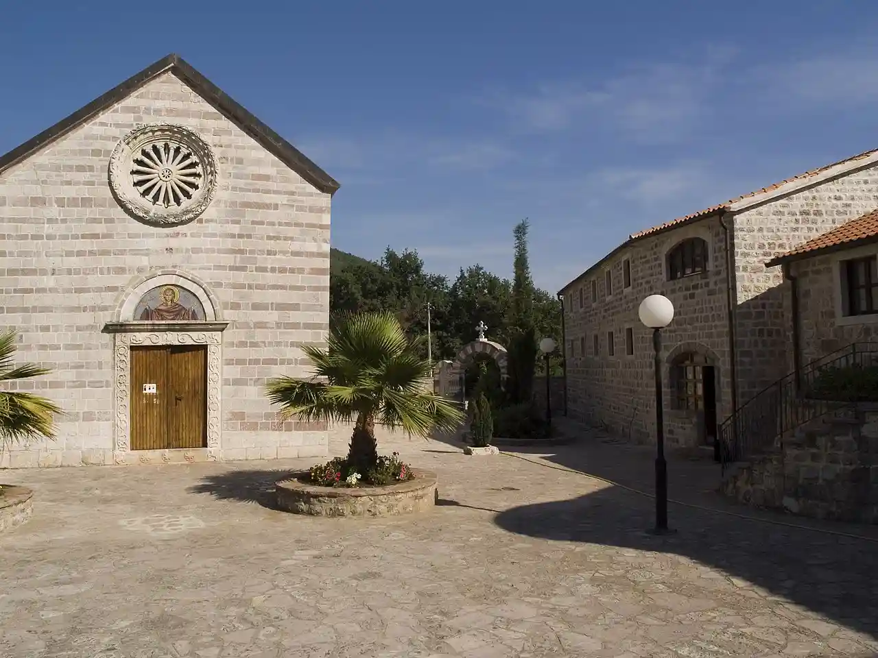 The Podmaine Monastery () is a Serbian Orthodox monastery built in the 15th century by the Crnojević noble family in Podmaine near Budva, Zeta (modern day Montenegro). The monastery has two churches, smaller and older church of Presentation of the Mother of God was built by Crnojević noble family in the 15th century while bigger church (of Dormition of the Mother of God) was built in 1747. Read more on Wikipedia
