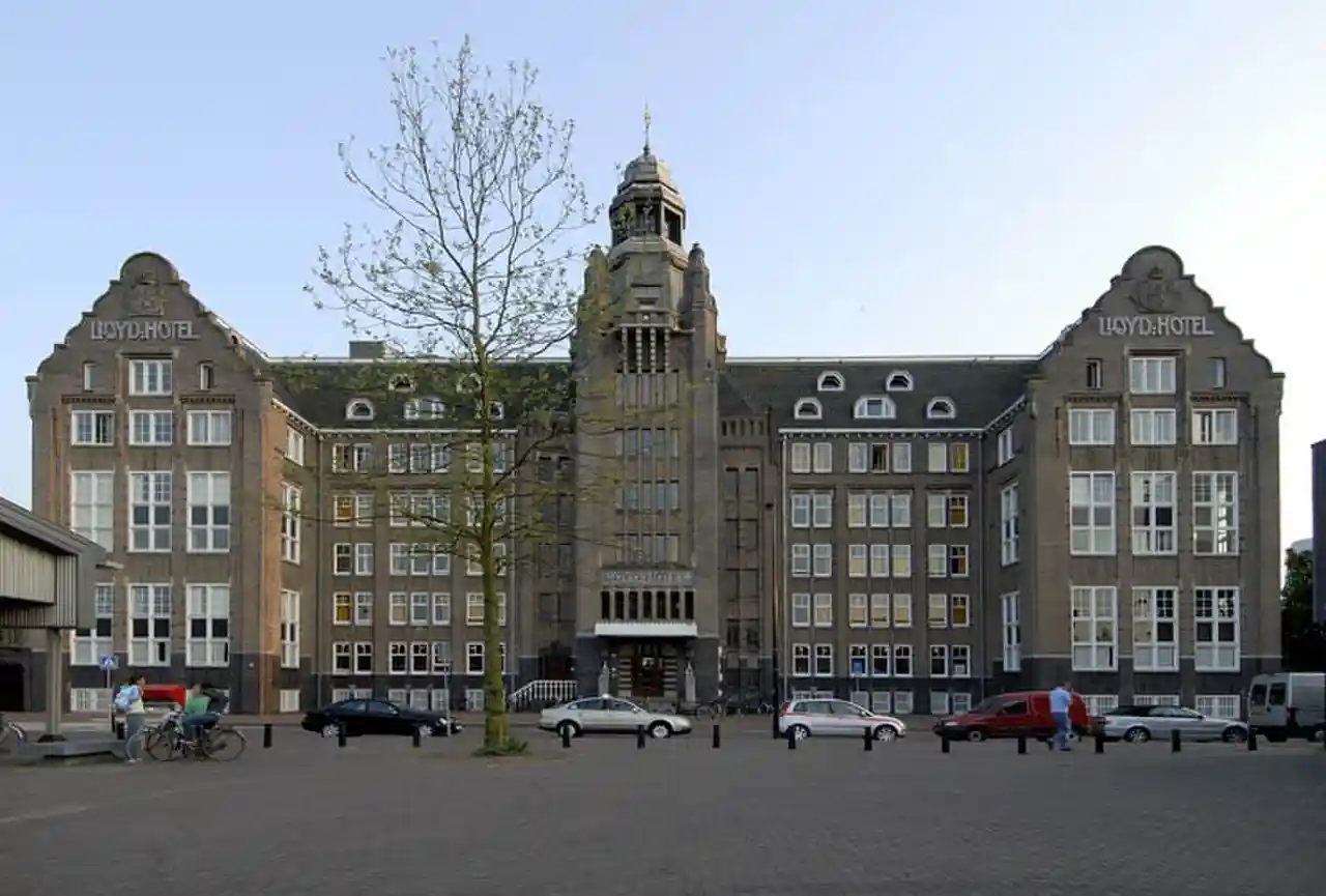 Lloyd Hotel is a hotel housed in a historic building in the Eastern Docklands of Amsterdam, commissioned by the Royal Holland Lloyd (Koninklijke Hollandsche Lloyd). Founded as a hotel, it initially housed travelling immigrants. Later, it was used as a detention centre and was also home to artists' studios. It is an official national monument of the Netherlands. Read more on Wikipedia