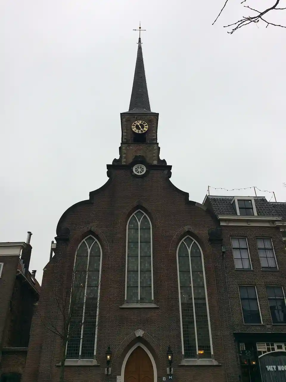 The Lutherse Kerk, also known as St. George's Chapel, is an 18th-century church in the Dutch city of Delft. The church's foundation was laid in the 15th or 16th centuries, with a wooden structure being built on top of it. This first wooden church burned down in 1536, and the city of Delft erected an armory where the church had stood. The armory was converted into the current Lutheran church in 1768, and a new stone facade and steeples where added to the existing building. Read more on Wikipedia