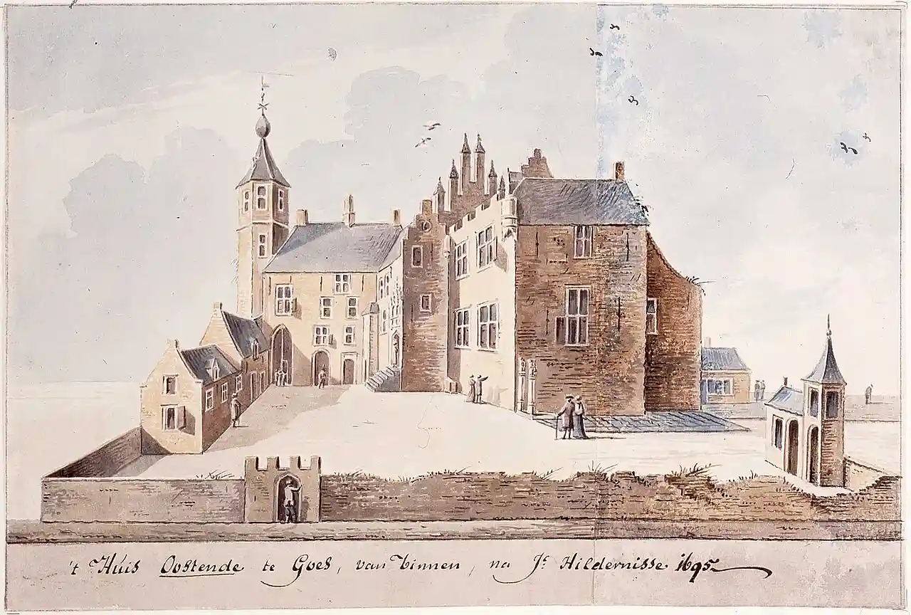 Oostende Castle is a castle in Goes, the Netherlands. The current castle was part of a motte-and-bailey castle. Its grounds formed the outer bailey. The motte was directly south of it, now under the Maria Magdalena Church. Read more on Wikipedia
