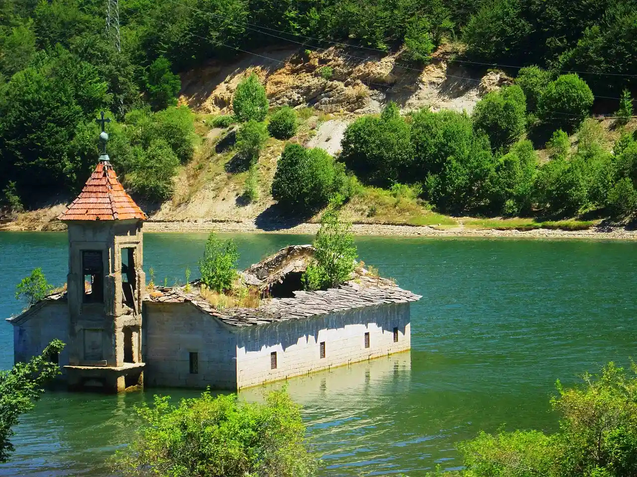 St Nicholas Church () is an abandoned church in Mavrovo, North Macedonia which is submerged in Mavrovo Lake. Built in 1850 with icons painted by Dicho Zograf, the church served as the main village church of Mavrovo. With the construction of the hydroelectric power station in Mavrovo and the artificial Mavrovo Lake, the church got submerged under water. During summer periods of drought, the church is accessible through land. Read more on Wikipedia