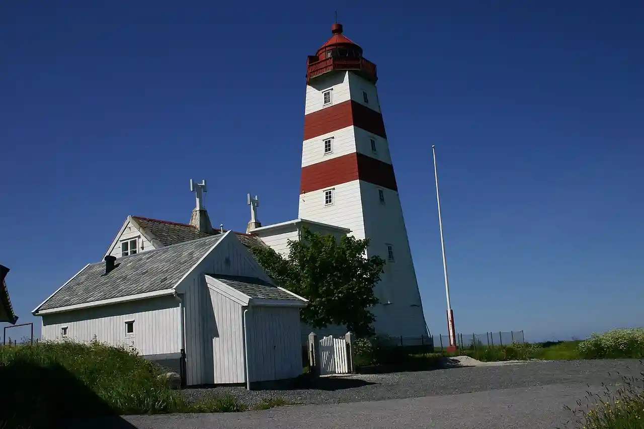 Alnes lighthouse was established in 1852 to guide fishing boats safely to the harbor of the small fishing community of Alnes on Godøy island on the west coast of Norway. It is located on the north side of Godøy island in the municipality of Giske in Møre og Romsdal county, about northwest of Leitebakk. Read more on Wikipedia