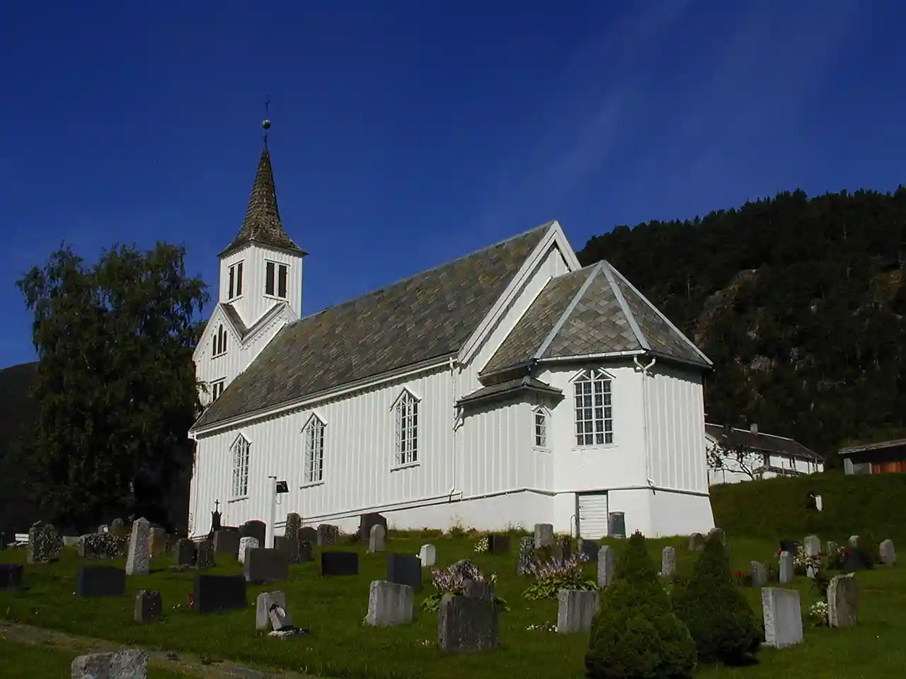 Eid Church () is a parish church of the Church of Norway in Rauma Municipality in Møre og Romsdal county, Norway. It is located in the village of Eidsbygda. It is the main church for the Eid og Holm parish which is part of the Indre Romsdal prosti (deanery) in the Diocese of Møre. The white, wooden church was built in a long church design in 1797 using plans drawn up by an unknown architect. The church seats about 190 people. Read more on Wikipedia