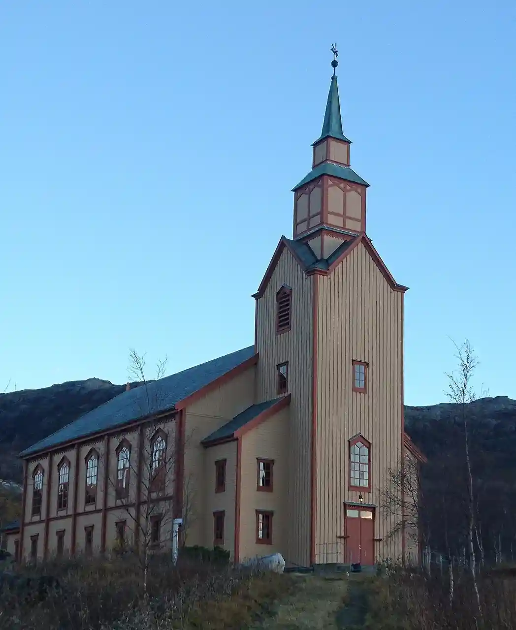 Gildeskål Church () is a parish church of the Church of Norway in Gildeskål Municipality in Nordland county, Norway. It is located just north of the village of Inndyr. It is the main church for the Gildeskål parish which is part of the Bodø domprosti (deanery) in the Diocese of Sør-Hålogaland. The orange-colored, wooden, neo-gothic church was built in a long church style in 1881 using plans drawn up by the architect Carl J. Bergstrøm. The church seats about 750 people. Read more on Wikipedia