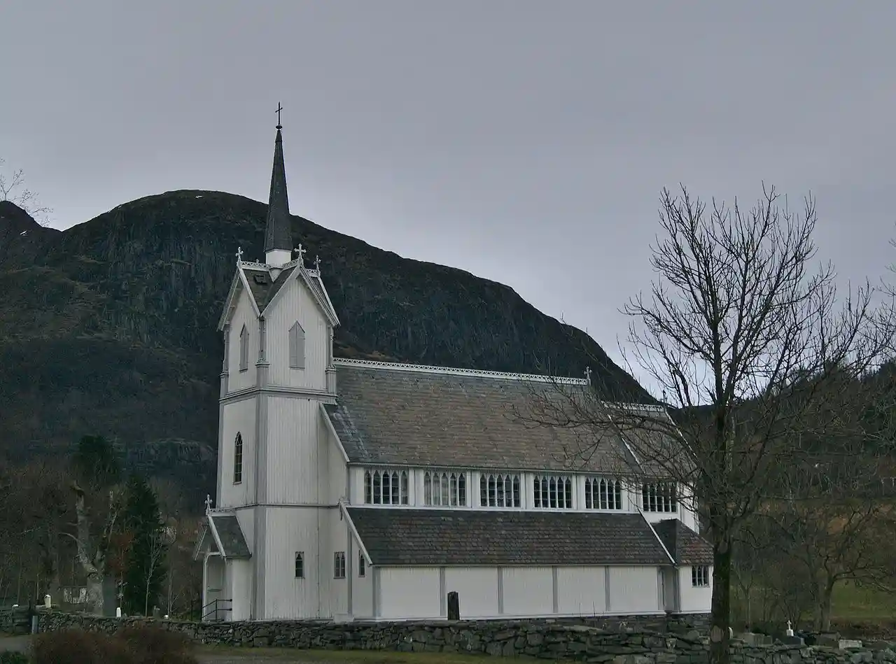 Holmedal Church () is a parish church of the Church of Norway in Askvoll Municipality in Vestland county, Norway. It is located in the village of Holmedal, on the northern shore of the Dalsfjorden. It is one of several churches for the Askvoll parish which is part of the Sunnfjord prosti (deanery) in the Diocese of Bjørgvin. The white, wooden church was built in a long church style in 1868 using plans drawn up by the architect Christian Christie. The church seats about 400 people. Read more on Wikipedia