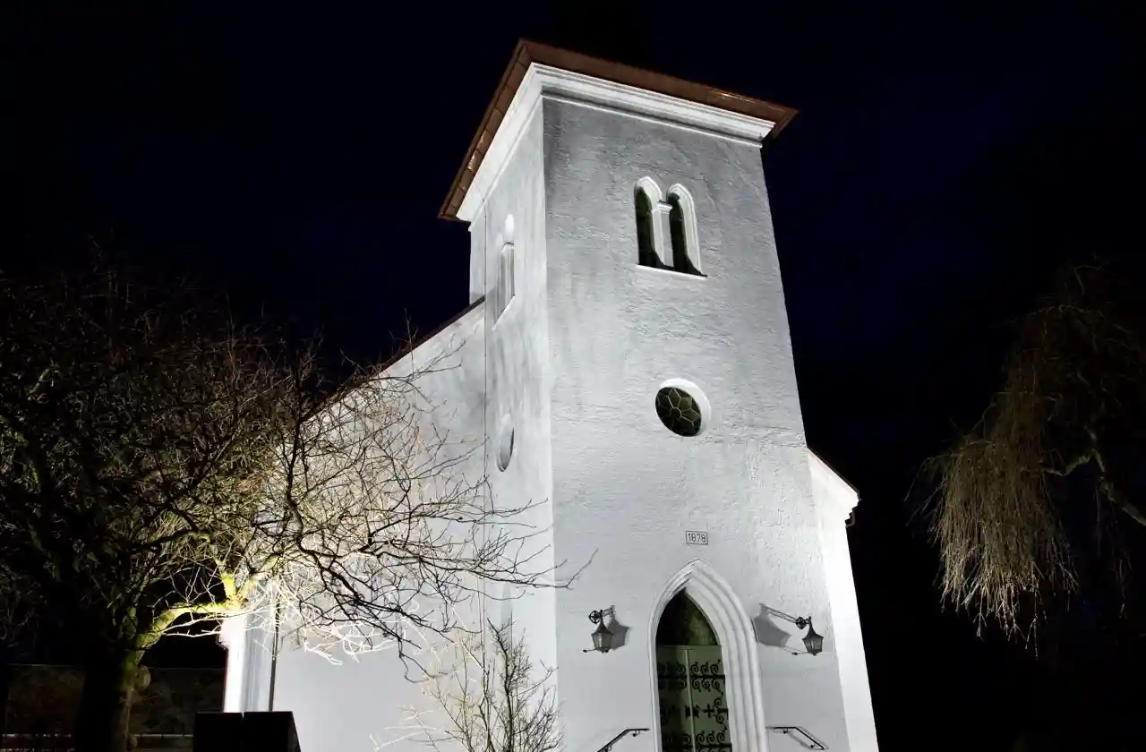 Birkeland Church ( or ) is a parish church of the Church of Norway in Bergen Municipality in Vestland county, Norway. It is located in the Nesttun neighborhood of Fana in the city of Bergen. It is the church for the Birkeland parish which is part of the Fana prosti (deanery) in the Diocese of Bjørgvin. The white, stone church was built in a long church style in 1878 using designs by the architect Giovanni Jacob Harbitz Müller. The church seats about 300 people. The church has a unique tower with an octagonal copper-clad steeple. Read more on Wikipedia