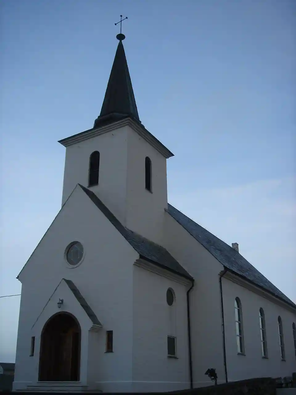 Fedje Church () is a parish church of the Church of Norway in Fedje Municipality in Vestland county, Norway. It is located in the village of Fedje on the northern coast of the island of Fedje. It is the church for the Fedje parish which is part of the Nordhordland prosti (deanery) in the Diocese of Bjørgvin. The white plastered brick church was built in a long church design in 1941 using plans drawn up by the architect Ole Halvorsen. The church seats about 400 people. The church is built of brick and covered with white plaster. This was chosen because it is better suited than wood for the harsh marine climate on Fedje. The roof consists of slate from Alta and the tower is covered with copper. Read more on Wikipedia