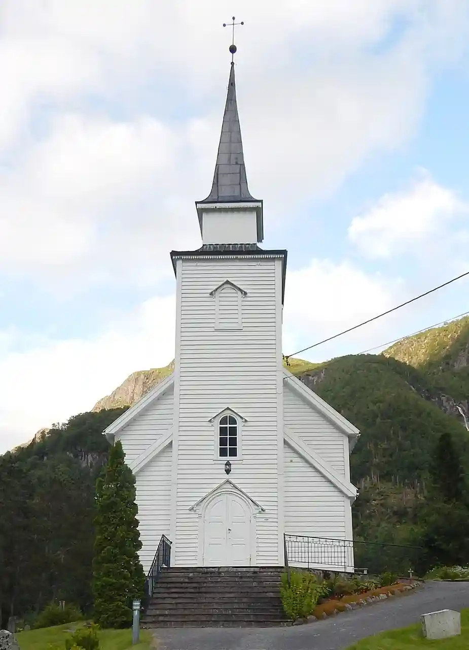 Hyen Church () is a parish church of the Church of Norway in Gloppen Municipality in Vestland county, Norway. It is located in the village of Straume, near the shore of the Hyefjorden. It is the church for the Hyen parish which is part of the Nordfjord prosti (deanery) in the Diocese of Bjørgvin. The white, wooden church was built in a long church style in 1876 by the architect Karl Uchermann. The church seats about 300 people. Read more on Wikipedia