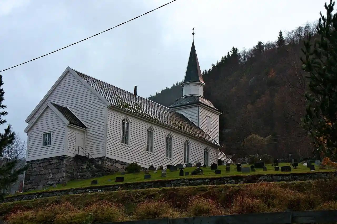 Brekke Church () is a parish church of the Church of Norway in Gulen Municipality in Vestland county, Norway. It is located in the village of Brekke. It is the church for the Brekke parish which is part of the Nordhordland prosti (deanery) in the Diocese of Bjørgvin. The white, wooden church was built in a long church design in 1862 using plans drawn up by the architect Christian Henrik Grosch. The church seats about 390 people. Read more on Wikipedia