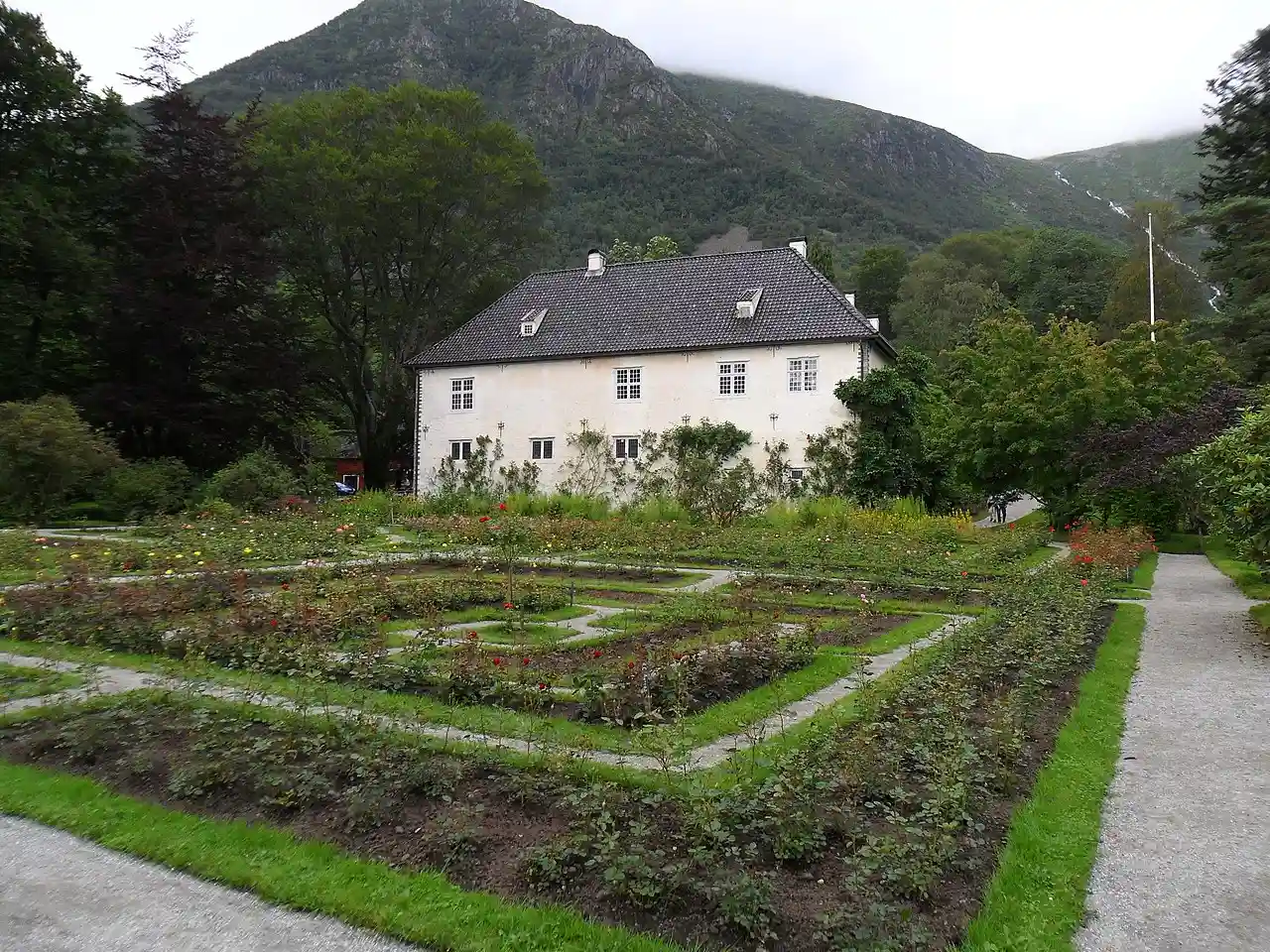 Barony Rosendal (Norwegian: Baroniet Rosendal) is a historic estate and manor house situated in Kvinnherad in Hordaland county, Norway. The barony was built in the 17th century by Danish noblemen on the old estate of the Norwegian noble Galte family, the current barony estate making out the historical farms of Hatteberg, Mel and Eik. Read more on Wikipedia