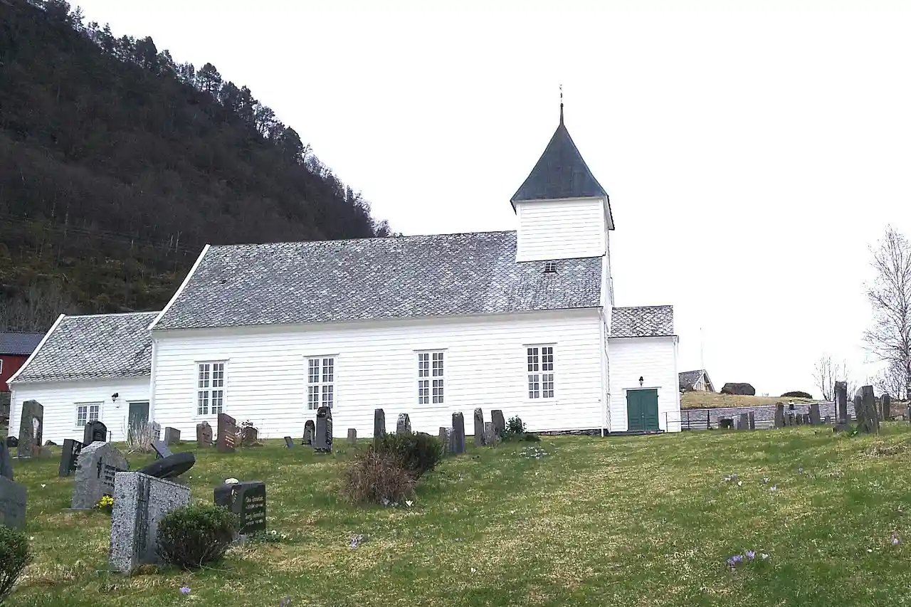Sandnes Church (, also known as ) is a parish church of the Church of Norway in Masfjorden Municipality in Vestland county, Norway. It is located in the village of Masfjordnes, right on the shore of the Masfjorden. It is one of the three churches in the Masfjorden parish which is part of the Nordhordland prosti (deanery) in the Diocese of Bjørgvin. The white, wooden church was built in a long church design in 1845 using plans drawn up by the architect Eiler Hagerup Holtermann who based his designs on plans drawn by Hans Linstow. The church seats about 370 people. Read more on Wikipedia