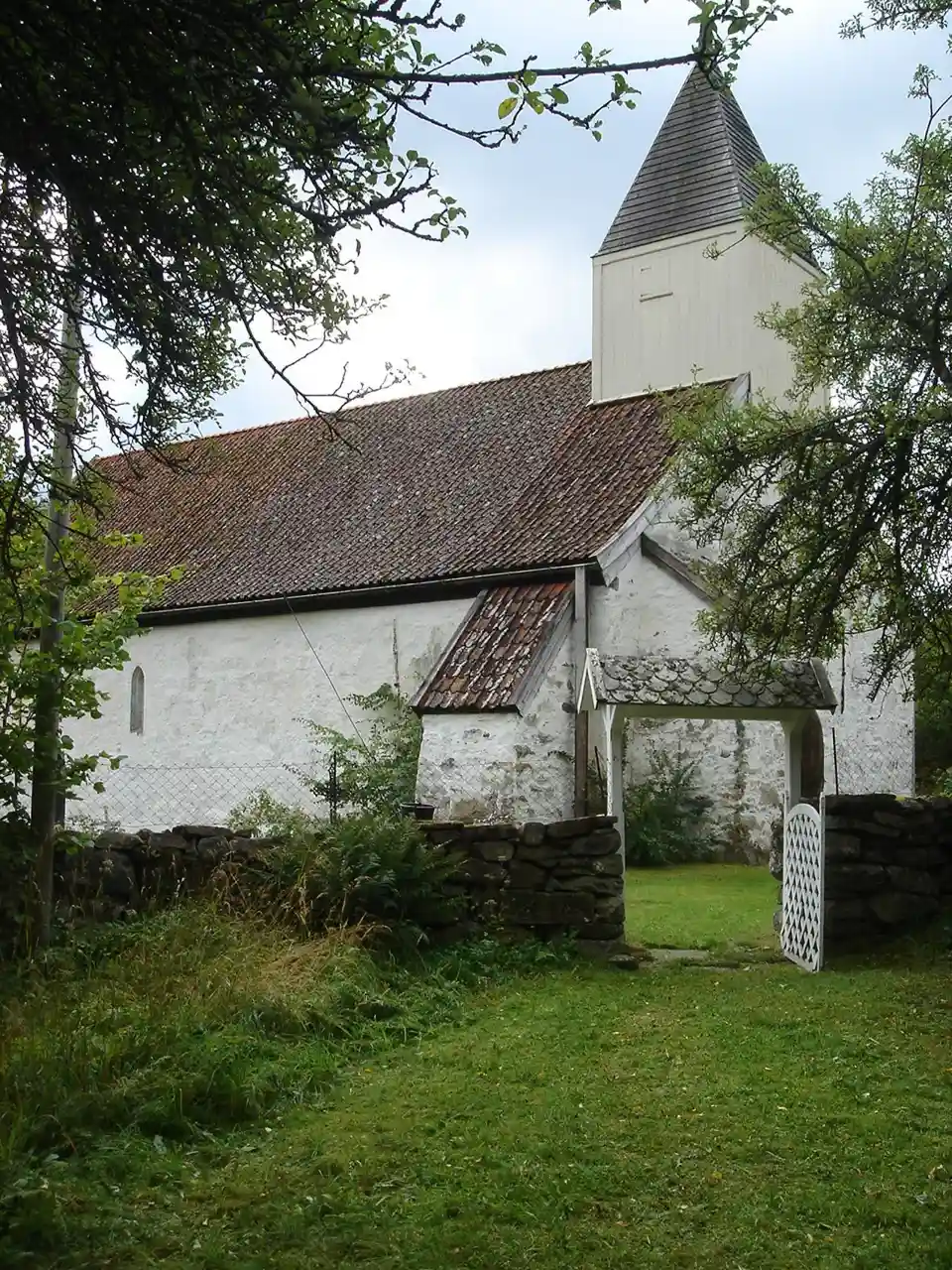 Kvamsøy Church () is a historic parish church of the Church of Norway in Sogndal Municipality in Vestland county, Norway. It is located on the small island of Kvamsøy. It was the church for the old Kvamsøy parish which is now part of the Sogn prosti (deanery) in the Diocese of Bjørgvin. The white, stone church was built in a basilica design between the years 1280 and 1300. The church seats about 210 people. Read more on Wikipedia