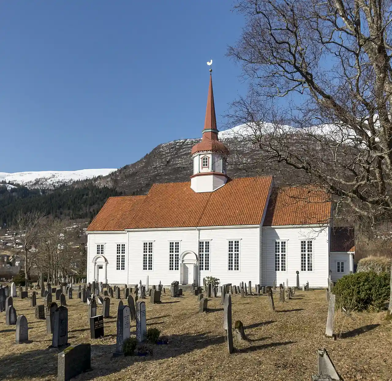 Eid Church () is a parish church of the Church of Norway in Stad Municipality in Vestland county, Norway. It is located in the village of Nordfjordeid. It is the church for the Eid parish which is part of the Nordfjord prosti (deanery) in the Diocese of Bjørgvin. The white, wooden church was built in a long church design in 1849 by the builder Claus Wiese using plans from the architect Hans Linstow. The church seats about 550 people. This is the fifth church building to sit at Nordfjordeid. Read more on Wikipedia
