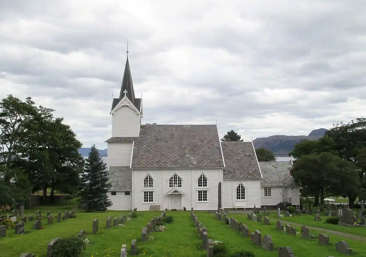 Leikanger Church () is a parish church of the Church of Norway in Stad Municipality in Vestland county, Norway. It is located in the village of Leikanger on the shore of the Vanylvsfjorden. It is the church for the Leikanger parish which is part of the Nordfjord prosti (deanery) in the Diocese of Bjørgvin. The white, wooden church was built in a long church design in 1866 using plans drawn up by an unknown architect. The church seats about 370 people. Read more on Wikipedia
