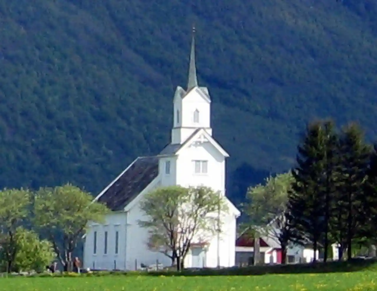 Oppstryn Church () is a parish church of the Church of Norway in Stryn Municipality in Vestland county, Norway. It is located in the village of Oppstryn, on the shore of the lake Oppstrynsvatnet. It is the church for the Oppstryn parish which is part of the Nordfjord prosti (deanery) in the Diocese of Bjørgvin. The white, wooden church was built in a long church design in 1863 using plans drawn up by the architect Hans Linstow. The church seats about 300 people. Read more on Wikipedia