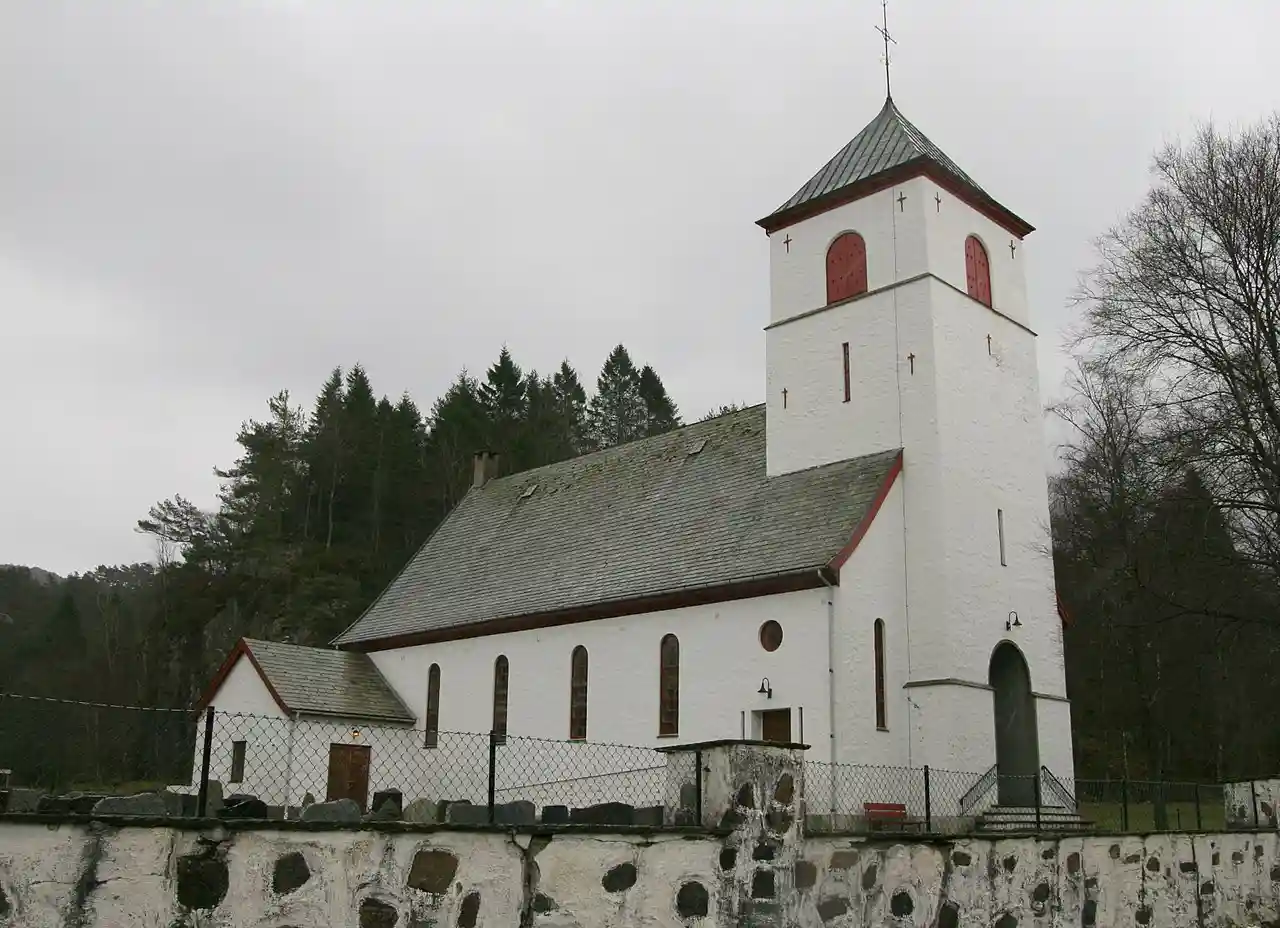 Førde Church () is a parish church of the Church of Norway in Sveio Municipality in Vestland county, Norway. It is located in the village of Førde. It is one of the churches for the Valestrand og Førde parish which is part of the Sunnhordland prosti (deanery) in the Diocese of Bjørgvin. The white, stone church was built in a long church design in 1938 using plans drawn up by the architect Torgeir Alvsaker. The church seats about 250 people. Read more on Wikipedia