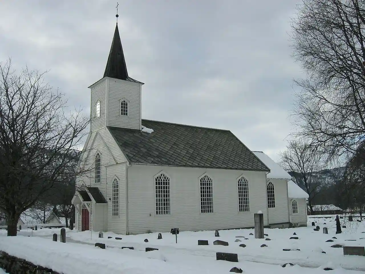 Vinje Church () is a parish church of the Church of Norway in Voss Municipality in Vestland county, Norway. It is located in the village of Vinje. It is the church for the Vinje parish which is part of the Hardanger og Voss prosti (deanery) in the Diocese of Bjørgvin. The white, wooden church was built in a long church design in 1871 using plans drawn up by the architect Ole Vangberg. The church seats about 350 people. Read more on Wikipedia