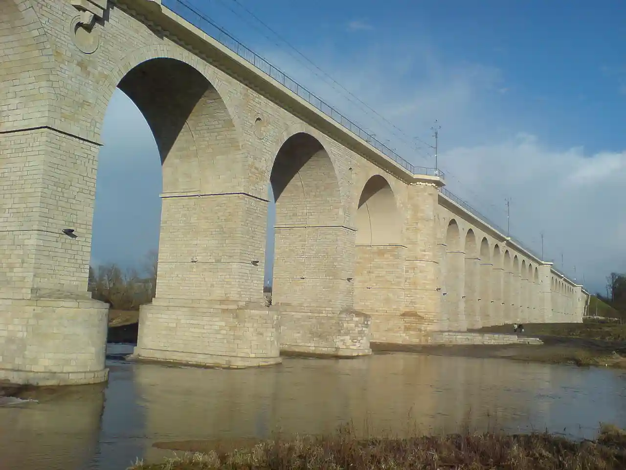 The Bolesławiec rail viaduct is a railway bridge over the river Bóbr in Bolesławiec in Lower Silesia, Poland. Read more on Wikipedia