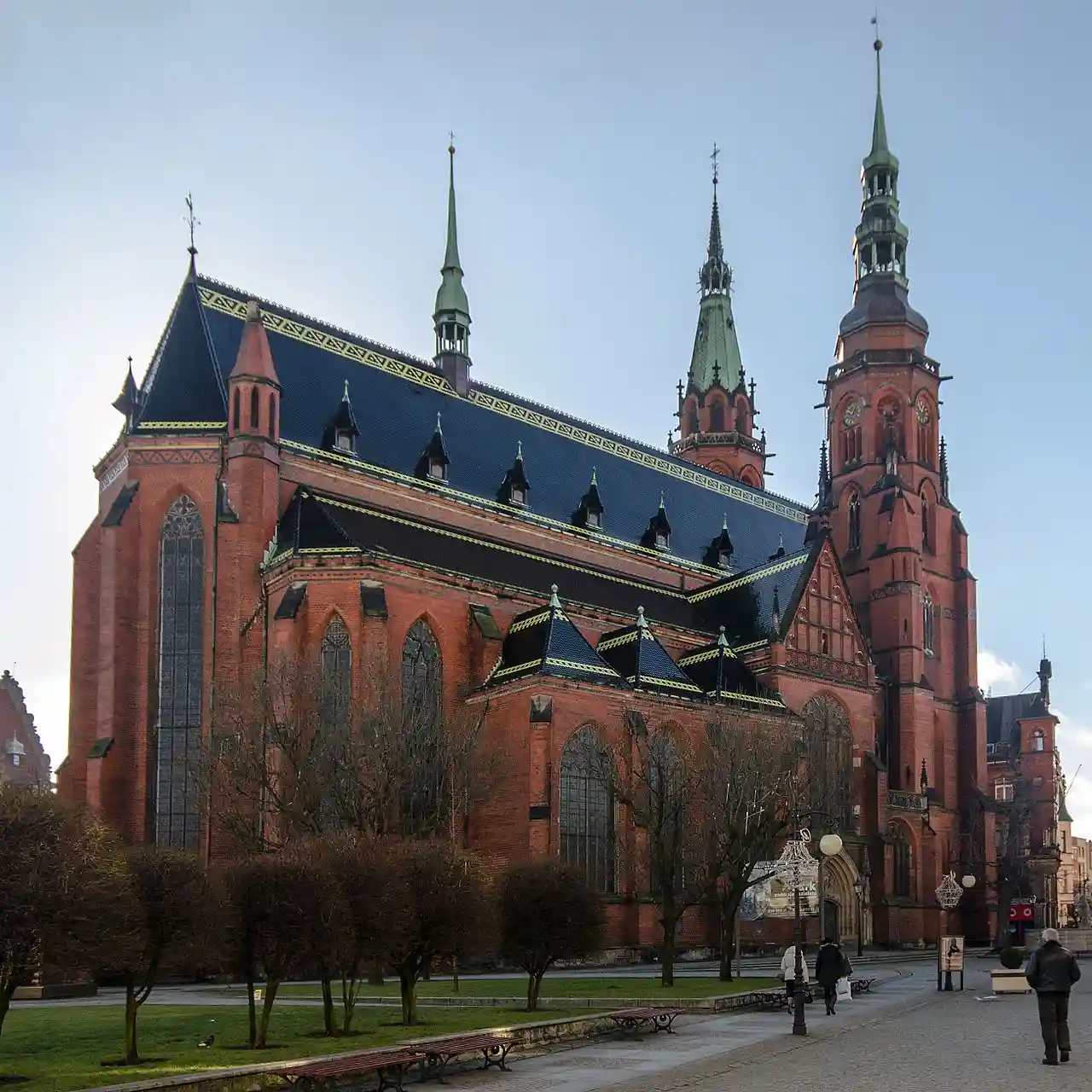 The Cathedral of Saint Apostles Peter and Paul in Legnica is located at Cathedral Square in the city of Legnica, Poland. The present building was erected between 1333 and 1380. A chapel was added in the fifteenth century, and in the late nineteenth century the church was converted into the neo-Gothic style. Over the centuries the church has acquired numerous statues and decorative features. Pope John Paul II established the church as a cathedral on March 25, 1992 and visited the cathedral on June 2, 1997. Read more on Wikipedia