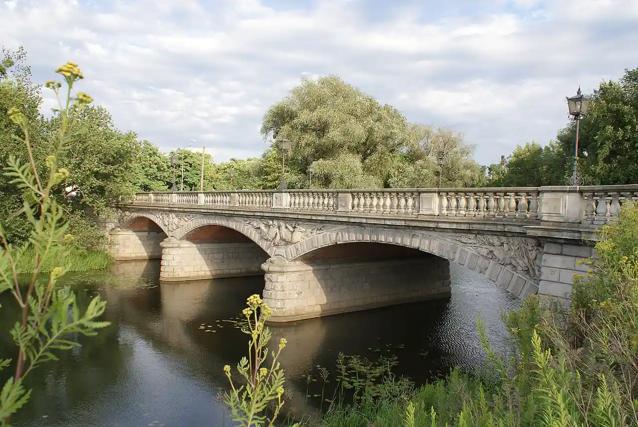 Oławski Bridge () is a road bridge over the Oława River in Wrocław, Poland. It was also known as Mauritius Brücke or Margarethenbrücke (German), St. Mauritius Bridge (English), and (cattle drive bridge). It was constructed during 1882–1883 and was designed by Alexander Kaumann, with assistance from Eger and Reichelt, Beer, Wackwitz and Hoffmann. Read more on Wikipedia
