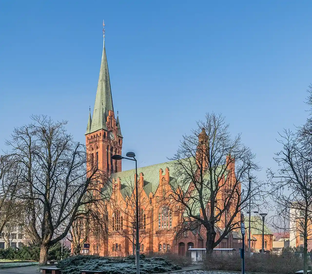 Saint Andrew Bobola's Church is located in downtown Bydgoszcz, Poland, on KoĊcielecki Square. Its patron saint is the Polish Jesuit Andrew Bobola. The edifice, completed in 1903, was designed by German architect Heinrich Seeling. It was registered on the Kuyavian-Pomeranian Voivodeship Heritage List on December 15, 1998. Read more on Wikipedia