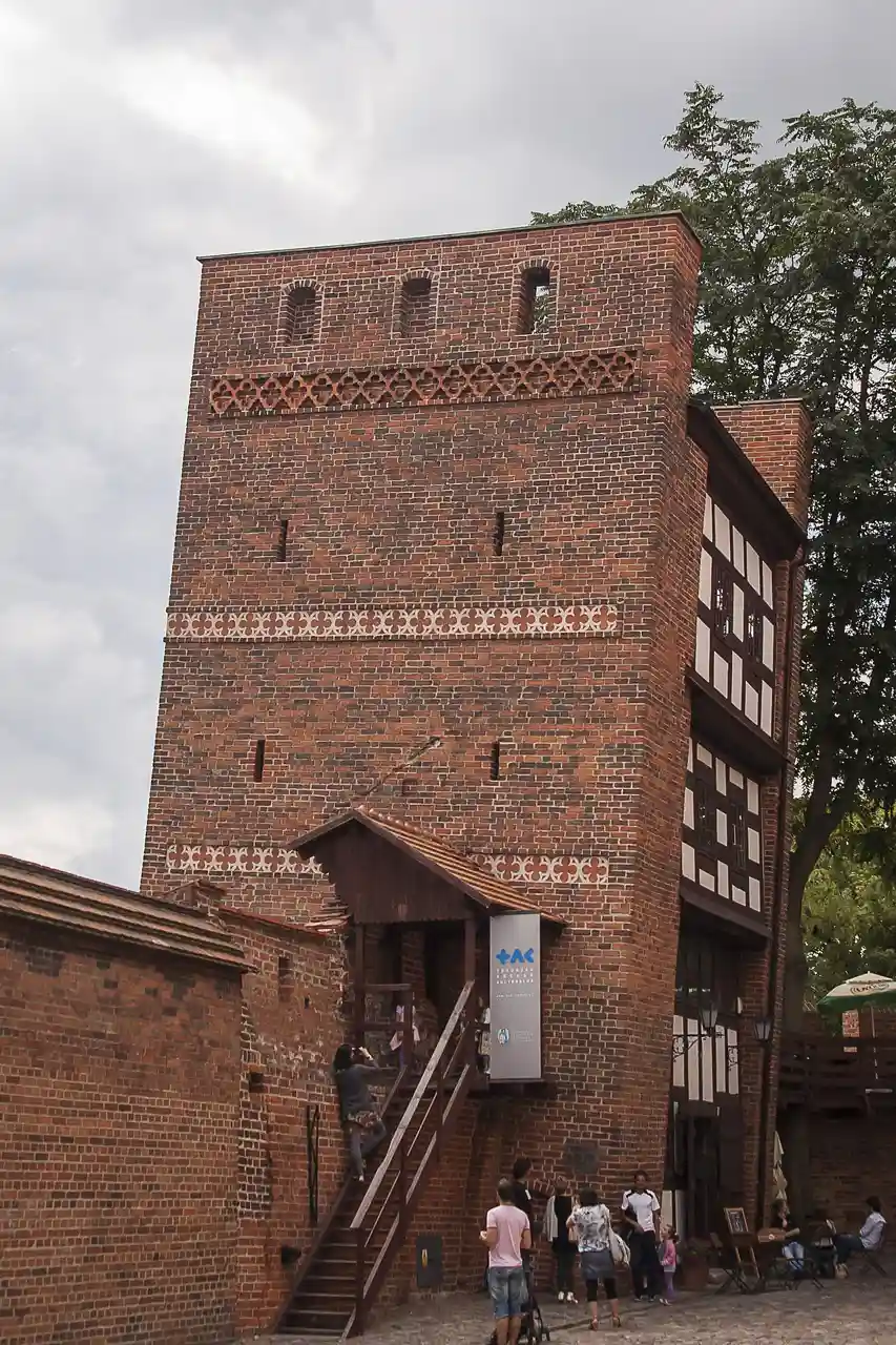The Leaning Tower of Toruń is a medieval tower in Toruń, Poland. It is known as a leaning tower because the top of the tower is displaced from where it would be if the tower were perfectly vertical. Located on Pod Krzywą Wieżą street, it is one of the most important landmarks in Toruń's Old Town. As part of the Medieval Town of Toruń it is listed as a UNESCO World Heritage Site and a Historic Monument of Poland. Read more on Wikipedia