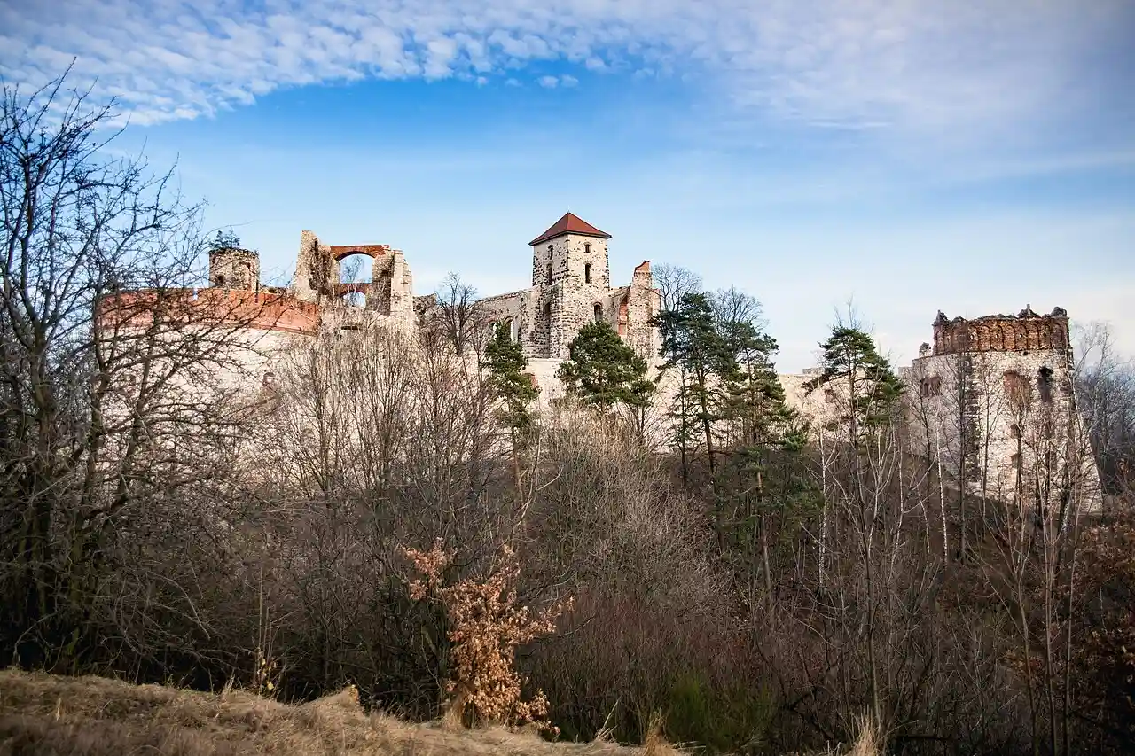 Tenczyn Castle, also known as Tęczyn Castle, is a medieval castle in the village of Rudno in the Polish Jura, Poland. It was built as a seat of the powerful Tęczyński family. The castle fell into disrepair during the Deluge in mid-17th century, after being pillaged and burned by Swedish-Brandenburgian forces looking for the Polish Crown Jewels and rumored treasures of the Tęczyński family. Subsequently rebuilt, it again fell into disrepair after a major fire in the mid-18th century and remains in that state to this day. Read more on Wikipedia